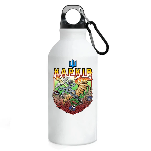 Фляга Харків (пляшка) для води з карабіном Металева #07 500 мл Білий