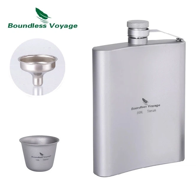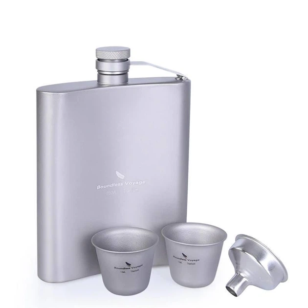 Фляга титанова для алкогольних міцних напоїв Boundless Voyage 200 мл з титановою чаркою 15 мл лійка та чохол