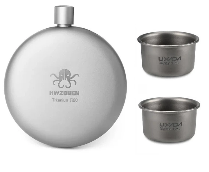 Фляга титанова для алкогольних міцних напоїв HWZBBEN 170 мл з титановими чарками Lixada 2 шт по 35 мл лійка та чохол