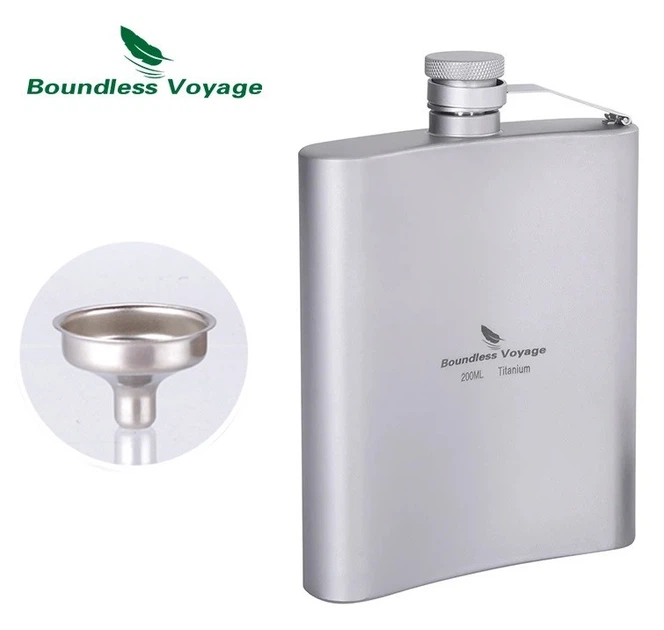 Фляга титанова для алкогольних міцних напоїв Boundless Voyage 200 мл з лійкою та чохолм