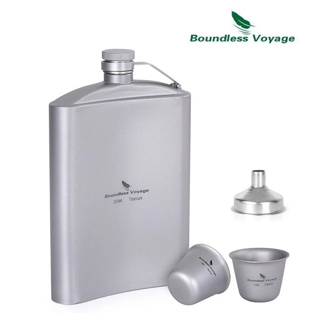 Фляга титанова для алкогольних міцних напоїв Boundless Voyage 250 мл з титановими чарками 2 шт по 15 мл лійка та чохол