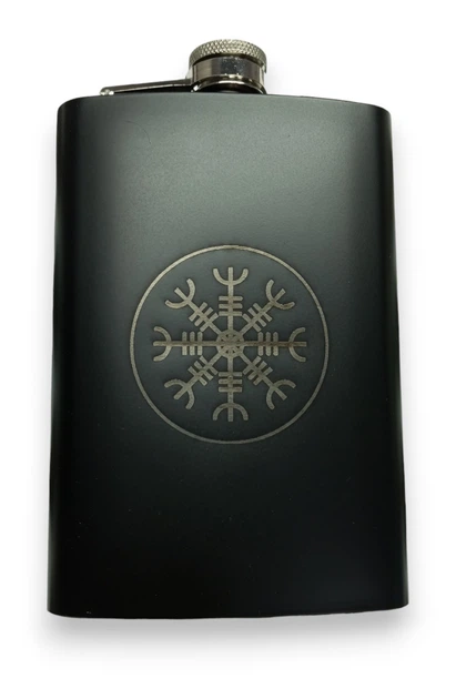 Фляга ТМ 4Profi чорна нержавіюча з гравіюванням Рунічний компас 9OZ 256 мл