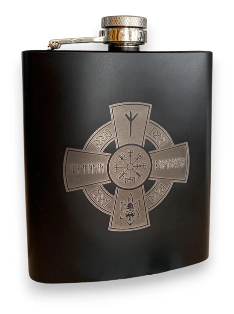 Фляга ТМ 4Profi чорна нержавіюча з гравіюванням Ukrainian Berserker 9OZ 256 мл