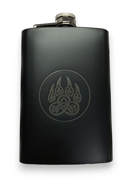 Фляга ТМ 4Profi чорна нержавіюча з гравіюванням Лапа медведя 9OZ 256 мл