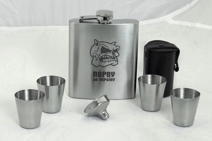 Набір ТМ 4Profi Фляга Срібло+ чотири чарки+ лійка 7oz 200 мл "Порву за Україну"