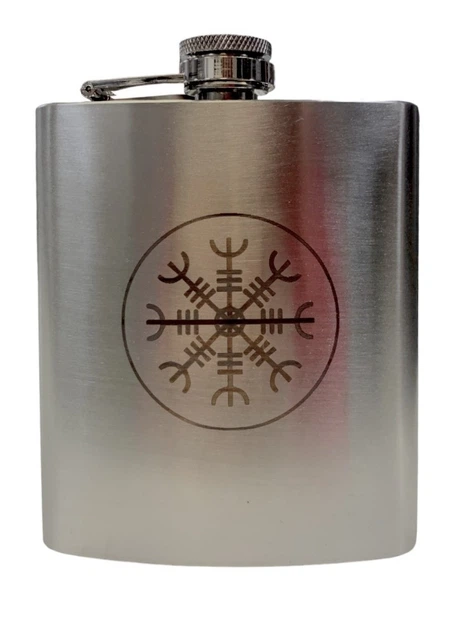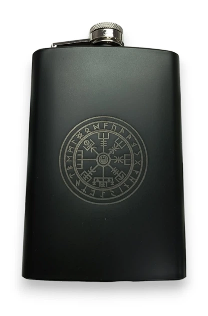 Фляга ТМ 4Profi чорна нержавіюча з гравіюванням Рунічний компас 9OZ 256 мл