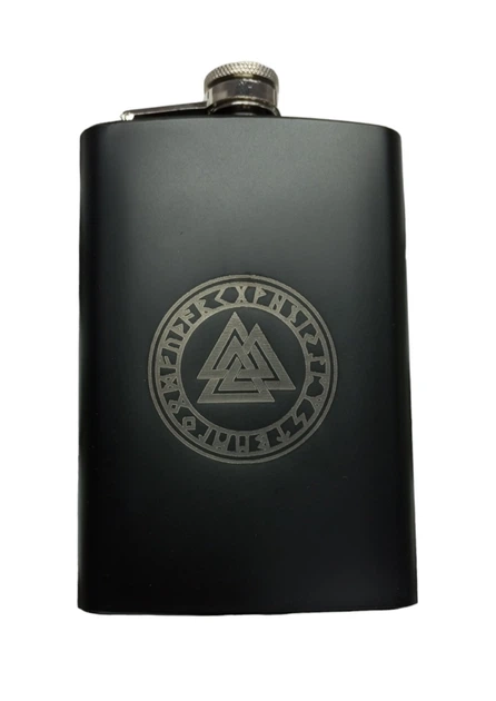 Фляга ТМ 4Profi чорна нержавіюча з гравіюванням Валькнут у колі рун 9OZ 256 мл