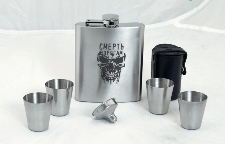 Набір ТМ 4Profi Фляга Срібло+ чотири чарки+ лійка 7oz 200 мл "Смерть ворогам"
