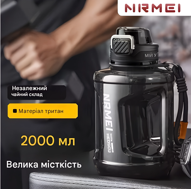 Пляшка NRMEI з тритану, герметична, з ручкою та ремінцем, 2000мл