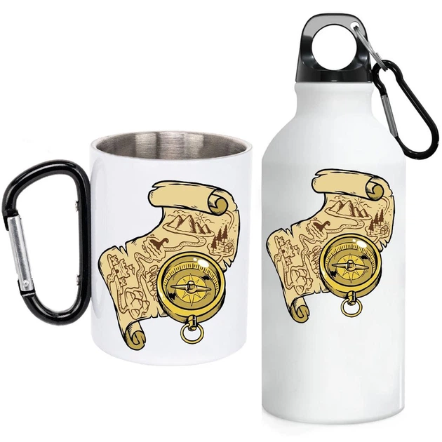 Набір металева фляга з карабіном + чашка з карабіном #068 (для туризму, кемпінгу, походів, подорожей)