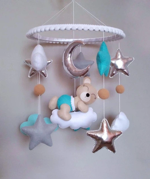 Музичний мобіль Чарівна майстерня "Ведмедик у бірюзі" 35 мелодій (M41B2- 1) без тримача