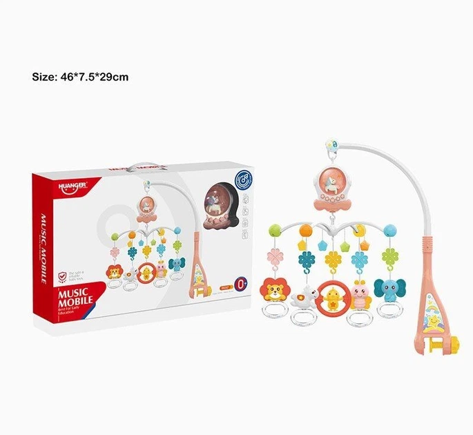 Музичний мобіль на ліжечко 3 в 1 нічник, проектор та мобіль з пультом управління арт 7707 Рожевий