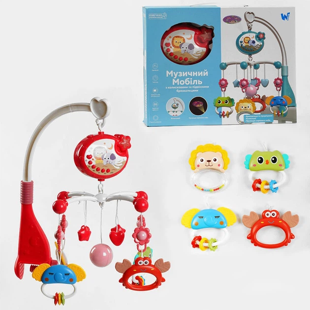 Музичний мобіль на дитяче ліжечко WToys колискне підсвічування проекція 4 підвіски-брязкальця мелодії прорізувач (MK39636)