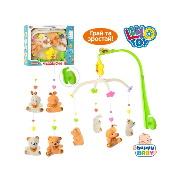 Заводна музична карусель Limo Toy D062 на дитяче ліжечко з 4 м’якими іграшками