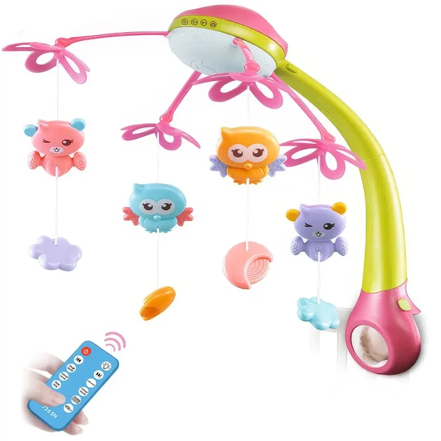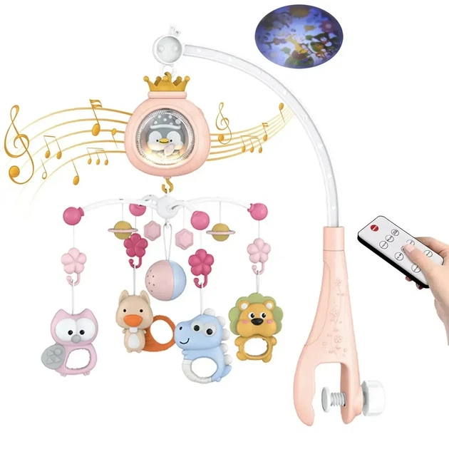 Музичний мобіль на ліжечко з проєктором і пультом керування Рожевий