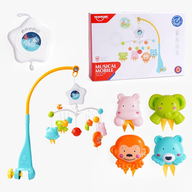 Мобіль на ліжечко музичний із звірятками дитячий мобілі для новонароджених без обертання