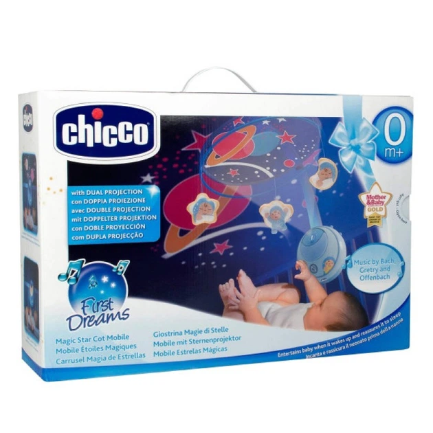 Музичний мобіль на ліжечко 3 в 1 нічник, проектор і мобіль із пультом керування 7707 Блакитний