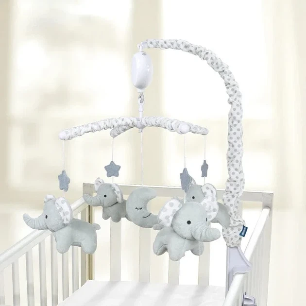 Музична карусель D124-5-6-7 на ліжечко з регулятором гучності та 4 м’якими підвісками, біла