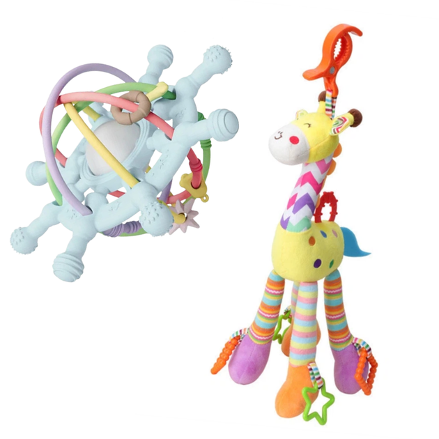 Набір 2Life Силікон прорізувач м'яч-абстракція і жираф на коляску жовтий v-13425