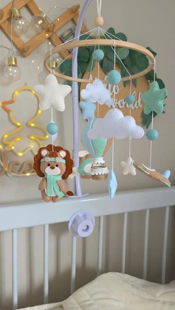 Мобіль в колиску, Левеня пілот, для немовлят, фетр, ручна робота, для хлопчика, для дівчинки