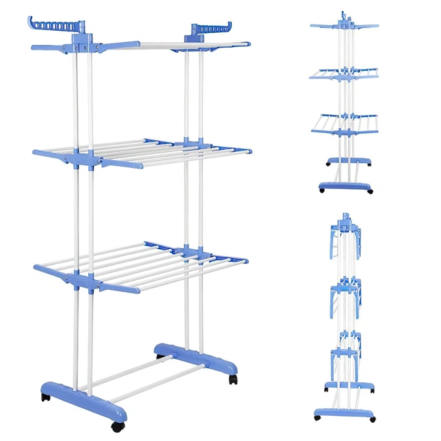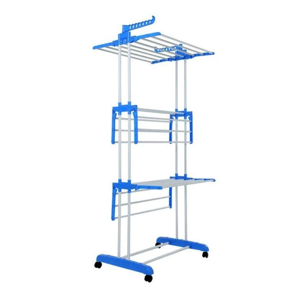 Вертикальна багатоярусна сушарка для одягу на колесах Garment Rack Синій