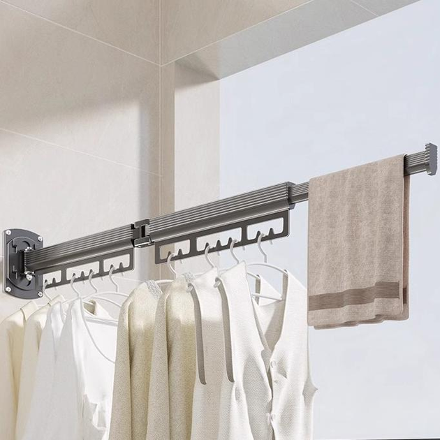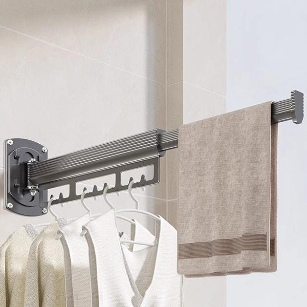 Настінна горизонтальна вішалка для сушіння одягу розкладна 91,5 см Сірий