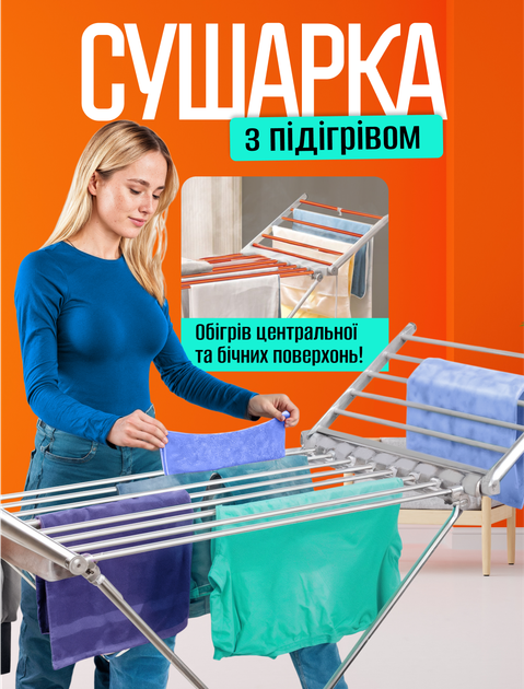 Сушарка для білизни сушилка електрична з підігрівом електросушарка сушка підлогова складна розкладна з обігрівом бічних крил