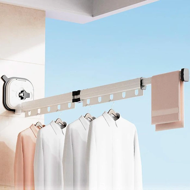 Настінна вішалка-сушарка для одягу на вакуумній присосці розкладна 92 см Білий