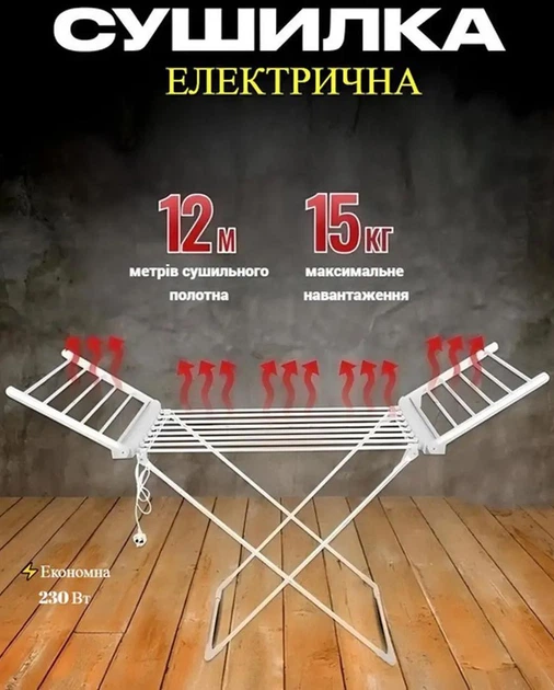Сушарка для білизни електрична Highlands ELE01MOB підлогова розкладна 74 х 146 х 55 см