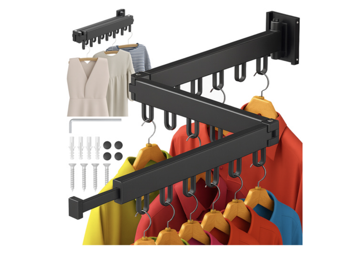 Складна Настінна Сушарка для Білизни RUHHY Висувна Стійка 18 Гачків Алюмінієвий Сплав Чорна