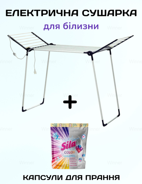 Електрична сушарка для білизни для одягу електросушарка з підігрівом підлогова посилена Rokar + Подарунок Капсули для прання