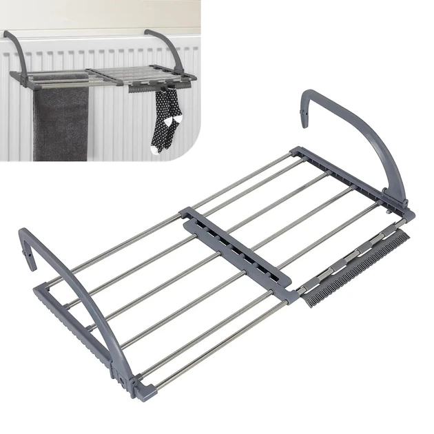Сушарка для одягу на радіатор висувна 93 см металева срібляста до 10 кг