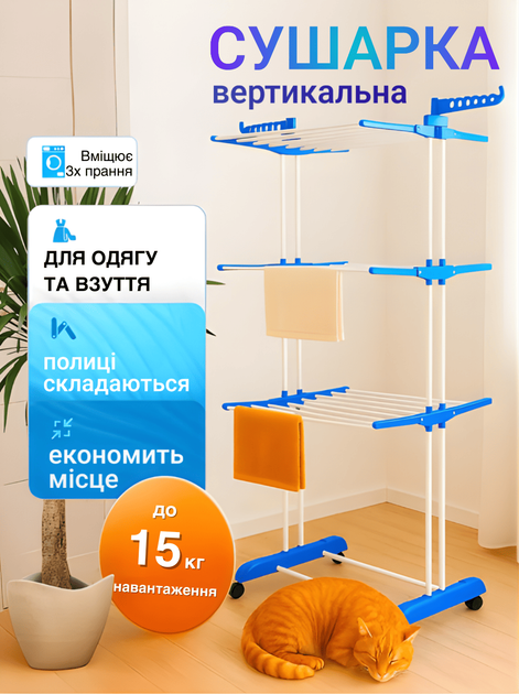 Сушарка для білизни 3-х рівнева GTM LauDry rack Сушка для одягу речей білизни для підлоги (M5120I)