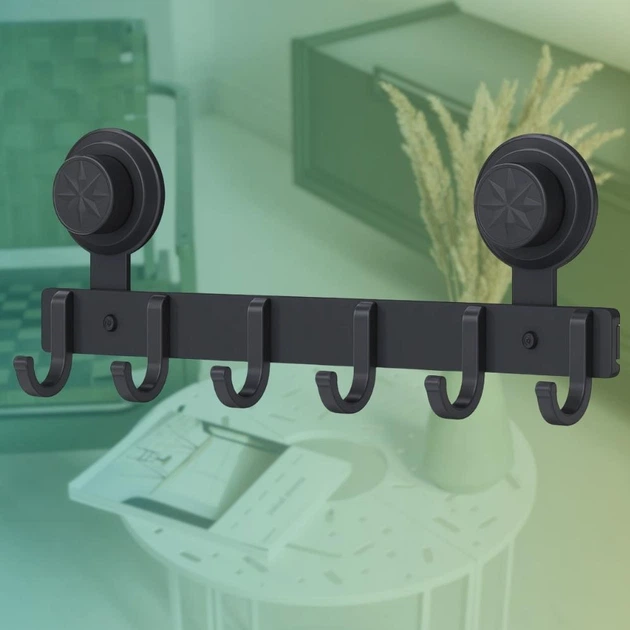 Настінна вішалка на 6 гачків Металевий тримач на стіну Гачок для одягу на присосках