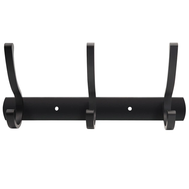 Тримач з гачками для рушників MVM 250мм потрійний прямокутний металевий чорний HA-03/3 BLACK