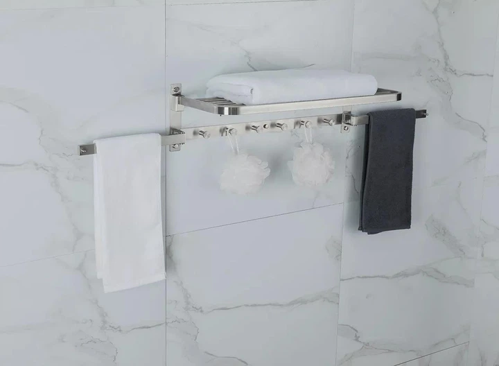 Поворотна полиця для рушників FRAP F30424 з 6-ма гачками, нержавіюча сталь.
