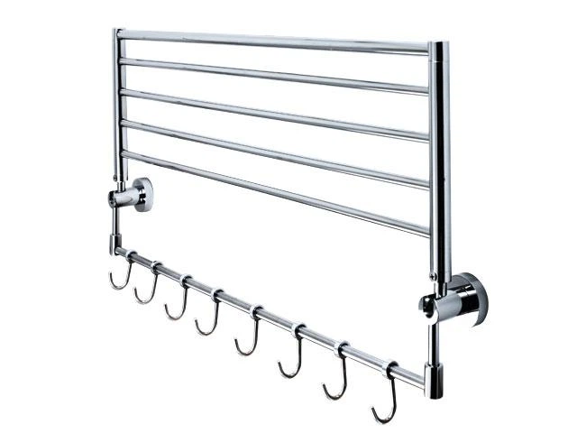Полка для полотенец L-600 5 перекладин + 8крючков откидная FL10-1 1*10 Aqua-World КСА007.10.1