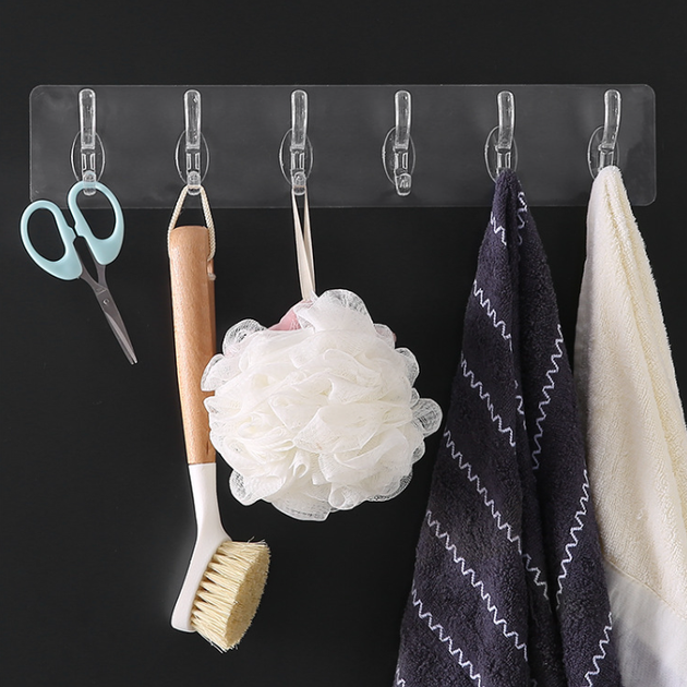 Гачки самоклеючі для кухні та ванної прозорі на 6 гачків - набір 3 шт