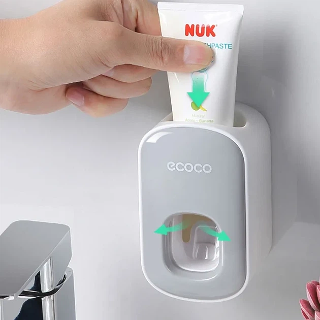 Автоматичний настінний дозатор для зубної пасти ECOCO сірий диспенсер для ванної кімнати