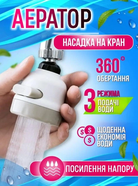 Насадка на кран для змішувача на кухню поворотна головка на 360 градусів з 3 режимами