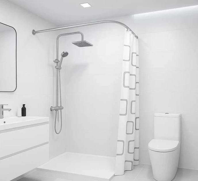 Карниз кутовий для шторки у ванну та душову 2х80 см білий метал