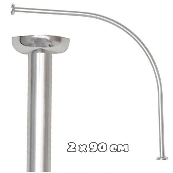 Карниз у ванну кімнату для шторки в душ дуговий 2х90 см хромований з кріпленнями