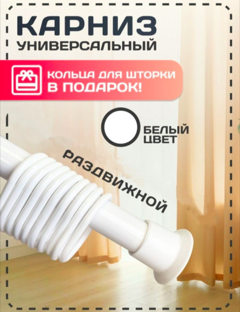 Карниз для ванної Dogus розсувний 110-220 см телескопічний висувний на пружині білий.