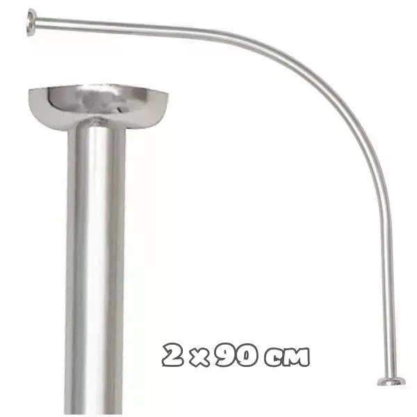 Карниз для ванної, душової кімнати, кутовий "дуга" 2х90 см із кріпленням хромований