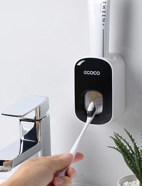 Диспенсер для зубної пасти настінний ECOCO біло чорний