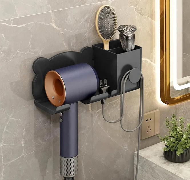 Органайзер пластиковий для ванної кімнати, настінний тримач для фена 23.28.29.2см, чорний колір