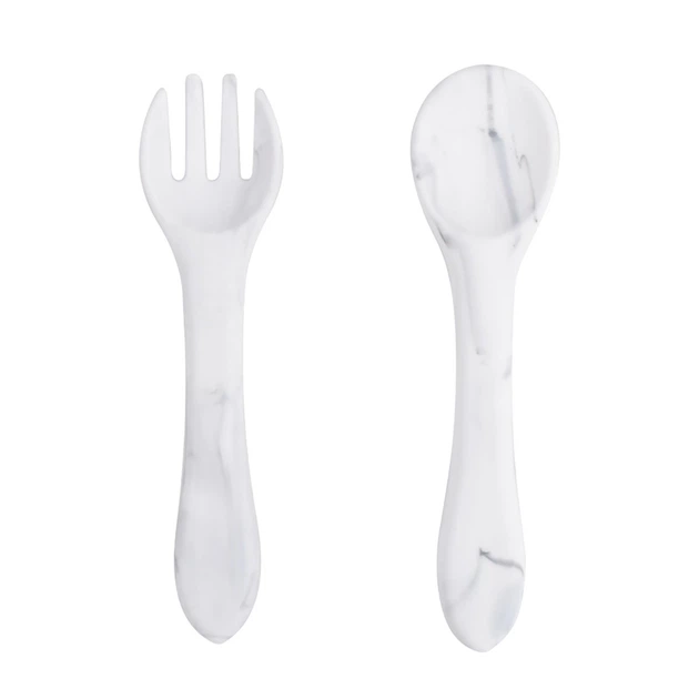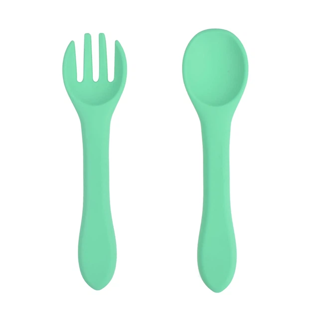 Прилади силіконові дитячі ложка та вилка з дерев'яною ручкой Рожеві PRD-Y14