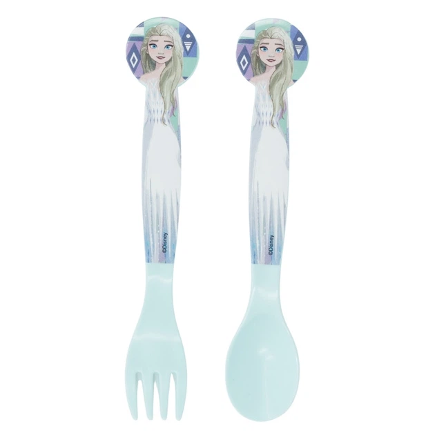 Дитячий набір столових приладів 2 предмети Холодне серце Stor Frozen пластикові ложка та вилка м'ятного кольору