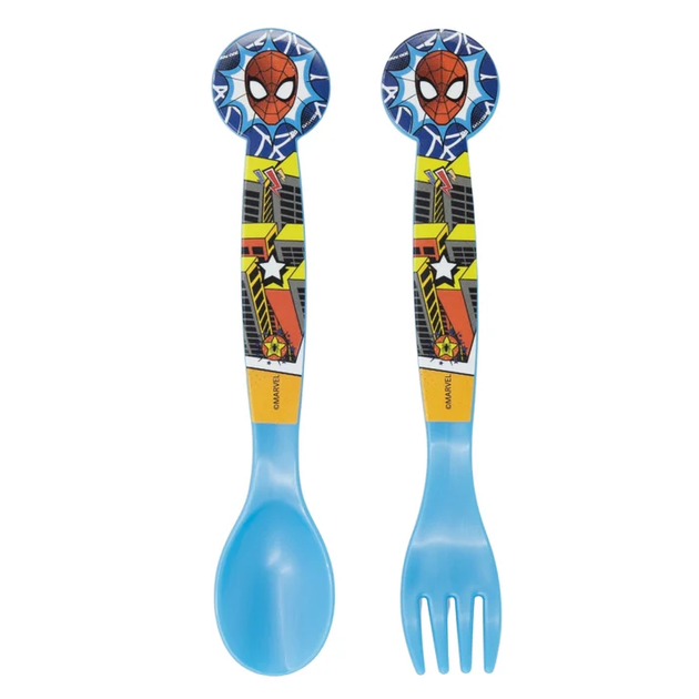 Дитячий набір столових приладів 2 предмети Людина-павук Stor Spider-Man пластикові вилка і блакитні ложка з синім