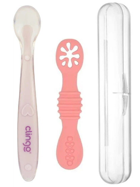 Набір дитячих силіконових ложок 2Life для першого прикорму в кейсі для зберігання Рожевий v-13376